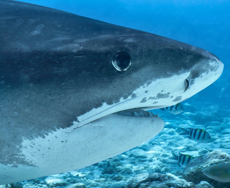 Divers descend into deep blue waters that drop off quickly from the reef, coming face-to-face with tiger sharks and up to seven other shark species (such as thresher, hammerhead, and reef sharks) regularly.