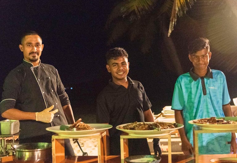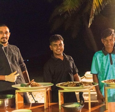 Just minutes from Scuba Haven, the harbor, and Fuvahmulah Airport, Sharky’s is a favorite spot for divers, travelers, and locals. The menu features Maldivian rice-and-curry, authentic Indian cuisine by an Indian chef, fresh seafood like grilled wahoo, and international dishes. Guests love the relaxed indoor/outdoor setting with sea breezes, sunset views, and even a private karaoke room.
